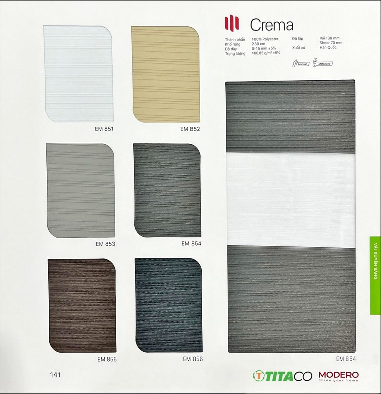 Mẫu Rèm cầu vồng Hàn Quốc Modero – Mã Crema EM854 – EM851 – EM852 – EM853