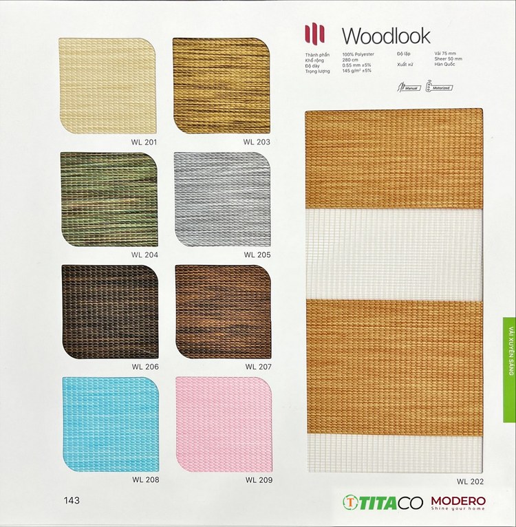 Mẫu Rèm cầu vồng Hàn Quốc Modero – Mã Woodlook WL207 – WL201 – WL202 – WL203 – WL204