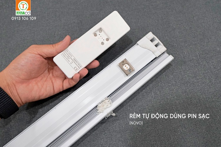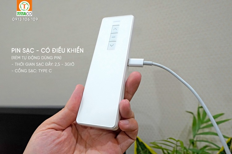 Rèm tự động dùng pin sạc đang là xu hướng được rất nhiều gia đình lựa chọn, đặc biệt là những căn hộ đã hoàn thiện mà không muốn đục tường để đi dây điện. Pin sạc 1 lần dùng được lâu và rất tiện khi tháo lắp để sạc pin.