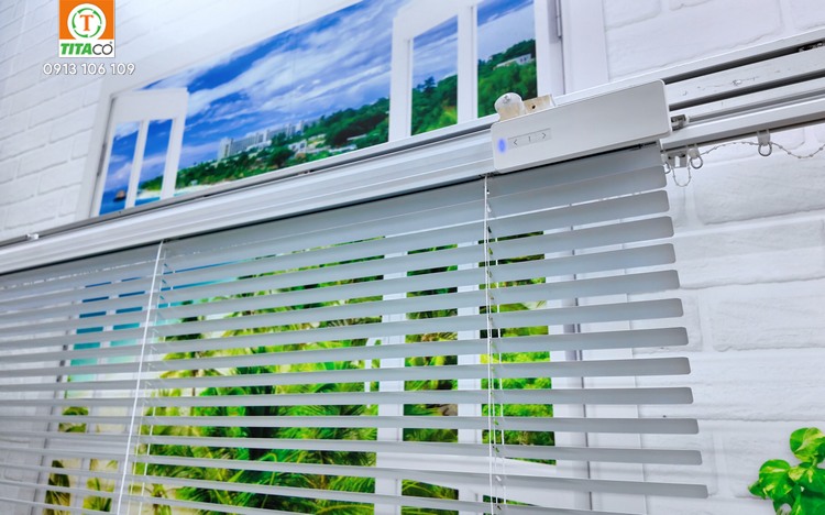 1Rèm Sáo Nhôm Tự Động Dùng Pin (Điều khiển: Pin/Remote)